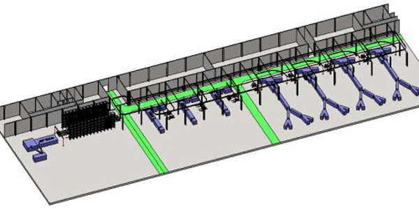 鋼絲簾布卷的儲(chǔ)存至各個(gè)裁斷機(jī)臺(tái)的自動(dòng)輸送。其中存儲(chǔ)采用自動(dòng)立體庫(kù),全自動(dòng)化立體倉(cāng)儲(chǔ)不僅按需求自動(dòng)存取,而且可以與倉(cāng)庫(kù)以外的生產(chǎn)環(huán)節(jié)進(jìn)行有機(jī)連接,系統(tǒng)將每個(gè)環(huán)節(jié)引入計(jì)算機(jī)數(shù)字管理,形成計(jì)算機(jī)信息化、條碼化管理,從而達(dá)到全自動(dòng)化控制的目的,使計(jì)算機(jī)管理系統(tǒng)和自動(dòng)化搬運(yùn)設(shè)備聯(lián)合作業(yè)。